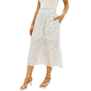 Show moreThe EXLURA Womens High Waist Polka Dot Pleated Skirt is the perfect combination of style and comfort, designed for women who appreciate fashion with a playful twist. This gorgeous midi swing skirt features a trendy polka dot pattern that adds a touch of whimsy to any outfit. Crafted from high-quality materials, this skirt has an elastic waistband that ensures a comfortable fit while enhancing your silhouette. The unique pleated design not only flatters your figure but also offers a chic and feminine flow, making it ideal for both casual outings and dressy events. With an adorable pocket detail, this skirt combines practicality with charm, giving it an additional edge in design while making it a versatile addition to your wardrobe.