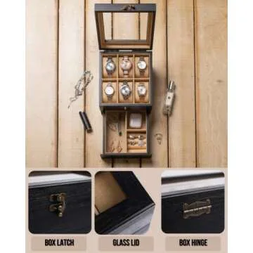 Exper City Watch Box, Watch Case for Men Women with Large Glass Lid, Wooden Watch Display Storage Box with 2 - Layers & 6 - Slots, Black Mens Watch Box Organizer