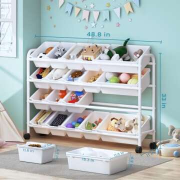 Show moreElevate your child's playroom with the EXPERLAM Kids Toy Storage Organizer, designed to cater to the dynamic needs of little ones while seamlessly blending into your home decor. This extra-large toy organizer measures an impressive 48.8x33x11 inches, providing ample space with 20 removable plastic bins—16 standard size and 4 larger ones—to keep toys and books beautifully sorted and easily accessible. The classified multi-layer design instills organization skills, making cleanup a playful and efficient task for your children.