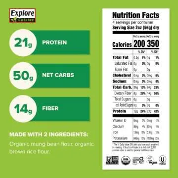 EXPLORE CUISINE Organic Mung Bean Rotini (6 Pack) - 8 oz - Easy to Make Gluten-Free Pasta - High in Plant-Based Protein - USDA Certified Organic, Non-GMO, Vegan, Kosher - 24 Total Servings,8 Ounce (Pack of 6)