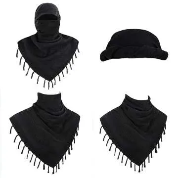 Explore Land Cotton Shemagh Keffiyeh Tactical Desert Scarf Neck Head Wrap with Tassel for Men Women (Black, One Size)