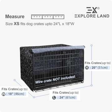 Explore Land Pattern Dog Crate Cover for 24 Inches Wire Cage, Heavy-Duty Polyester 1 2 3 Doors Standard Metal Pet Kennel Enclosure (Brief Polygonal)