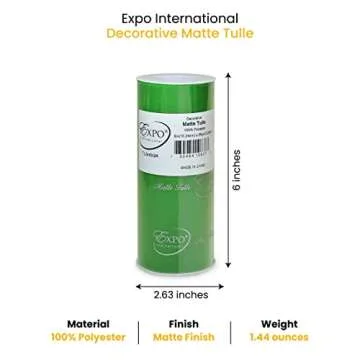 Expo International Decorative Matte Tulle, Spool of 6 Inches X 25 Yards, Polyester-Made Tulle Fabric, Matte Finish, Lightweight, Versatile, Washable, Easy-to-Use / Green