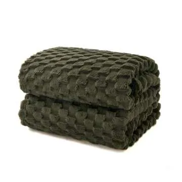EXQ Home Fleece Throw Blanket - 3D Jacquard Cozy Flannel for All Seasons (50"×60", Dark Green)
