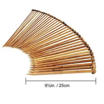Exquiss Bamboo Knitting Needles Set-36pcs Single Pointed Wooden Knitting Needles, 9 Inches Length Knitting Supplies for Beginners (18 Sizes: 2.0 mm-10.0 mm) + Weaving Tools Knitting Kits