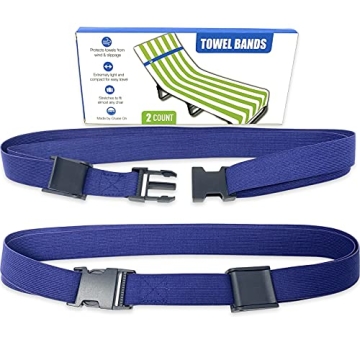 Show moreDiscover the ultimate solution to keep your beach or pool towel securely in place with our Extendable Towel Bands 4 Pack. Designed for the savvy traveler, these bands are a game-changer for anyone tired of their towels flying away or slipping off chairs. Made by US-based Cruise On, a trusted brand in cruise accessories, these bands are crafted from premium elastic fabric with an adjustable clasp, ensuring a perfect fit for any chair size. Say goodbye to bulky, space-consuming towel clips and hello to compact, efficient, and stylish towel bands that promise durability and strength without the risk of rust or breakage.