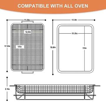 Show more Introducing the Extra Large Air Fryer Basket and Tray for Oven, a revolutionary cooking duo that promises to transform your kitchen experience. Measuring at a generous 18.8'' x 13.3'', this set includes a durable crisper mesh basket and a hassle-free baking tray. Crafted from high-quality food-grade stainless steel, it’s not only non-toxic but also built to withstand high temperatures without compromising on safety. The smooth handles on both sides make it user-friendly, enabling you to easily maneuver your meals in and out of the oven with confidence. Enjoy a healthier lifestyle as this air fryer basket is designed to provide optimal airflow for even cooking while preventing your food from burning.