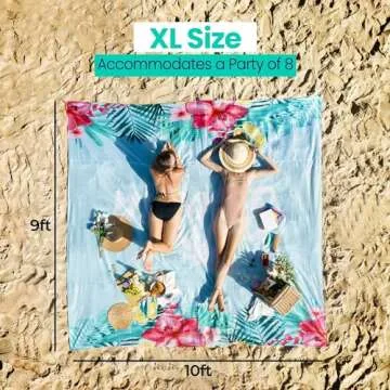 ... Show more Introducing the **Extra Large Beach Blanket**, the ultimate solution for all your beach outings and summer adventures. Measuring a generous **9x10 feet**, this blanket is designed to comfortably fit up to eight people, making it perfect for families and groups of friends. Engineered with a **waterproof and sandproof** fabric, you can say goodbye to sandy mishaps and soggy afternoons! Whether you’re lounging by the shore or enjoying a picnic in the park, this blanket ensures a dry and comfortable experience.