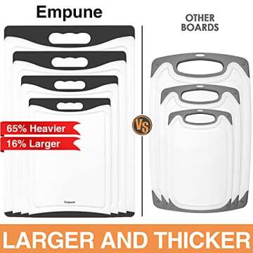 Cleaning up is a breeze with these boards; they can be rinsed under warm water or tossed into the dishwasher for a hassle-free clean. Their lightweight nature ensures that storing them is easy, letting you focus more on the joy of cooking rather than the ordeal of cleanup.