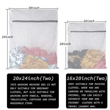 Extra Large Honeycomb Mesh Laundry Bag125gsm Net Fabric Durable and Reusable Delicate Wash Bag,Travel Organization Bag for Lingerie,Clothes,Jeans,Bath Towel,Sock (Set of 4(2L+2XL))