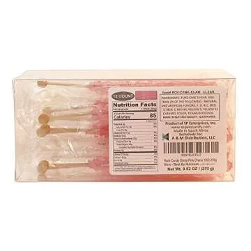 Extra Large Rock Candy Sticks: 12 Pink Cherry Lollipop - Individually Wrapped - Crystal Rock Candy Sticks for Party Favors, Candy Buffet, Birthdays, Weddings, Receptions, Bridal and Girl Baby Shower