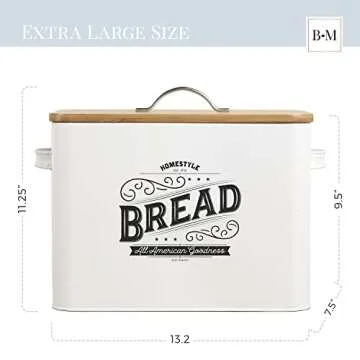 Extra Large White Farmhouse Bread Box for Kitchen Countertop - Breadbox Holder Fits 2+ Loaves - Bread Storage Container Bin - Rustic Bread Keeper Vintage Metal Kitchen Decor (White with Wood Lid)