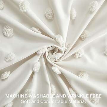 Extra Long Boho Farmhouse Cream Shower Curtain Woven Fabric 84 Inch Ivory Shower Curtain, 72 x 84 Tufted Pleat Floral Puffs Textured Modern Minimalist Ivory Shower Curtain Set with Hooks for Bathroom