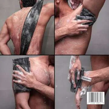 Extra Rough Exfoliating Washcloth-Extreme Body & Back Scrubber for Shower, Extra Long, Hygienic Rough Exfoliator, Men & Women, 2 Count Pack, Black & Grey, Killer Exfoliator