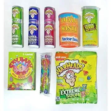This exciting collection includes iconic brands such as Warheads, Toxic Waste, and Cry Baby, showcasing an incredible variety of textures and flavors. This bundle will tantalize your taste buds with: