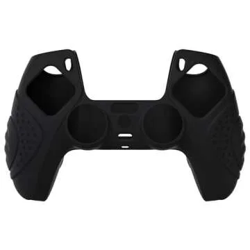 eXtremeRate PlayVital Guardian Edition Black Ergonomic Soft Anti-Slip Controller Silicone Case Cover for ps5, Rubber Protector Skins with Black Joystick Caps for ps5 Controller