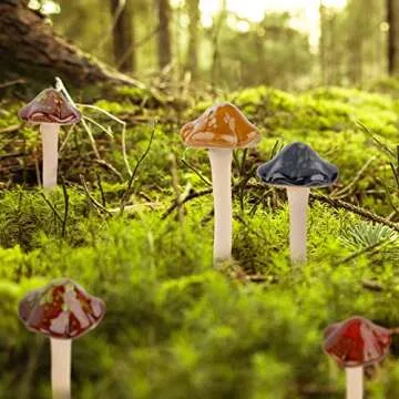 Show more Introducing the charming set of Mushroom Garden Accents, a delightful addition to any home or garden space. With its cute mushroom shape, this colorful set serves as the perfect decorative piece for anyone looking to enhance their surroundings. Made with high-quality ceramics, these delightful accents are adorned with a beautiful glaze that showcases vibrant colors, bringing a touch of magic to your potted plants or garden.