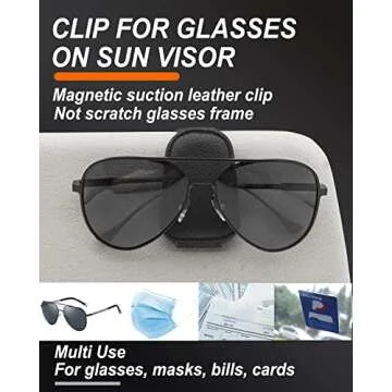 EYANBIS 2 Pack Sunglass Holder for Car, Magnetic Leather Eyeglass Hanger Sunglass Clip for Car Visor, Car Sunglass Holder Organizer Storage, Car Interior Accessories (2PCS, Black)