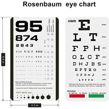 The PECULA Pocket Eye Chart is compact and features both Snellen and Rosenbaum charts, allowing for distance and near vision tests in a single, portable design, eliminating the need for larger charts.