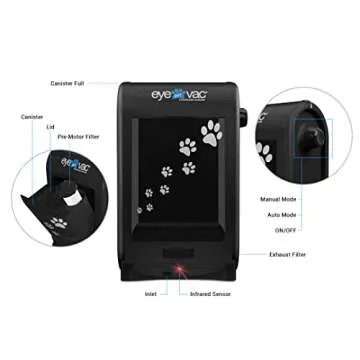 EyeVac Pet Touchless Vacuum Automatic Dustpan - Ultra Fast & Powerful - Great for Sweeping Cat Dog Pet Hair Food Dirt Kitchen, Corded Canister Vacuum, Bagless, Automatic Sensors, 1400 Watt (Black)