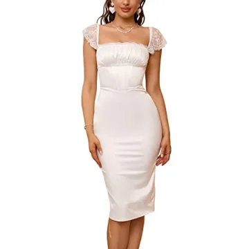 Why You will Love This Product?When you wear the EYNMIN Women's Lace Strap Bodycon Satin Midi Dress, you don’t just wear a dress; you embody confidence. The graceful lines and sumptuous fabric will make you feel empowered and beautiful, allowing your personality to shine through. Whether you’re dancing the night away at a celebration or taking elegant photos with loved ones at a wedding, this dress will ensure that you're not just seen, but remembered. Discover your enchanting side and turn any event into a memorable experience with this exquisite piece!