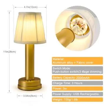 eypid 2000mah Battery Operated Table Lamps 3W LED Table Lamp Dimmable Portable Table Lamp 3 Level Brightness Cordless Table Lamps for Living Room,Bedside,Bedroom,Restaurant,Bar(Gold)