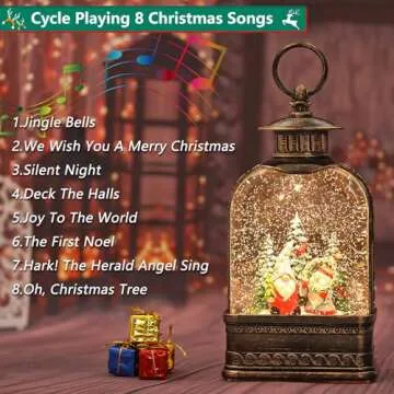 The glitter gnome lantern is not just visually appealing; it also boasts two delightful modes of operation. In its first mode, it glows softly, creating a warm ambiance, while the second mode brings the magic of Christmas alive with music! It cycles through eight beloved Christmas songs, including classics like 'Jingle Bells' and 'Silent Night', allowing you to immerse yourself in holiday cheer.