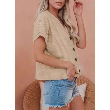 Show moreIntroducing the Eytino Plus Size Tops for Women, a versatile and stylish addition to your warm-weather wardrobe. Crafted from a super soft, cool, lightweight, breathable, and comfy fabric, this cardigan promises unparalleled comfort, making it the perfect choice for hot summer days. With its charming waffle knit design, V-neck cut, and elegant short sleeves, this button-up t-shirt provides both style and functionality. The loose fit ensures you move freely while looking effortlessly chic, making it a staple for various occasions.