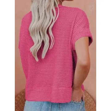 Eytino Womens Plus Size Tops Summer Casual Short Sleeve Waffle Knit Cardigan V Neck Solid Button Up Tops,5X Rose Red