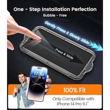 Show moreIntroducing the EZ-GLAZ 4 Pack for iPhone 14 Pro Screen Protector designed specifically for the 6.1-inch model, this product combines cutting-edge technology with everyday practicality. Achieving a flawless installation in seconds, this screen protector features automatic alignment functionality that simplifies the application process for even the most cautious users. With four high-quality screen protectors and two camera lens protectors included, you’re covered from scratches and impacts, ensuring that your iPhone maintains its pristine appearance. Each protector is crafted from 9H+ tempered glass, providing military-grade shatterproof and scratch-resistant durability that can withstand daily wear and tear. Enjoy HD clarity and maintain the touch sensitivity of your original screen, complemented by a fine oleophobic coating that repels fingerprints and oils, keeping your device cleaner for longer.