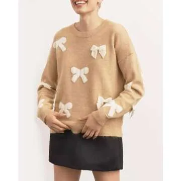 Show moreIntroducing the **EZAPINE Women’s Bow Sweater** – a must-have addition to your fall wardrobe that promises to elevate your style quotient and offer unparalleled comfort. This trendy long sleeve crew neck pullover combines a chic aesthetic with practical design, making it a versatile choice for various occasions. Crafted from soft, mid-weight knit fabric, it ensures warmth without compromising on breathability, featuring a perfectly loose fit that flatters all body types. The gorgeous fall colors are visually striking, adding a touch of elegance to your look while keeping you cozy during those cooler months.