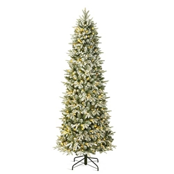 EZCHEER 6FT Pre-lit Artificial Snow Flocked Slim Christmas Tree with 300 Warm White LED Lights and 1300 Branch Tips
