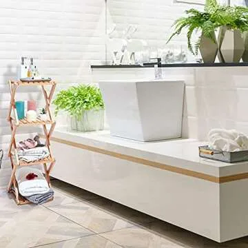 Designed for versatility, this shelving unit can be utilized in myriad settings: ideal for showcasing plants in a small garden, serving as a compact storage solution for toiletries, or providing an organized display for merchandise at craft fairs. The EZOWare Foldable Rubberwood Rack proves itself to be not only functional but also a stylish statement piece in your organization toolkit.