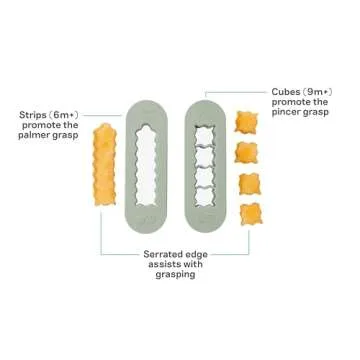 These food cutters are not just easy to use; they are specifically designed and tested by a pediatric feeding specialist, ensuring they meet the recommendations for developmental feeding stages. The 6-month+ food cutter is ideal for creating finger-length strips that encourage the palmar grasp, while the 9-month+ food cutter transforms food into bite-sized cubes that aid in developing the pincer grasp. This means your baby will be more independent at mealtime, enhancing their feeding skills right from the start.