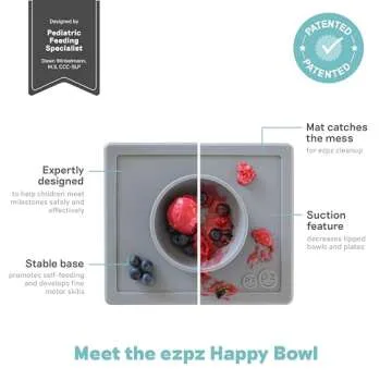 ezpz Happy Bowl - 24 Months + (Gray) - 100% Silicone Suction Bowl with Built-in Placemat – Dishwasher Safe