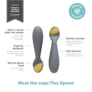 ezpz Tiny Spoon (2 Pack in Gray) - 100% Silicone Baby Spoon for Baby Led Weaning + Purees - 6 months + - Designed by a Pediatric Feeding Specialist - Baby Essentials & Baby Gifts