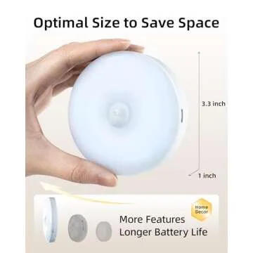 These puck lights are designed for life on the go with an advanced motion sensor that springs to life within a 10-foot radius. Choose among three distinct operational modes—Day Mode for consistent illumination, Night Mode for efficient energy use in the dark, or Always-On Mode for direct activation. Plus, they cleverly conserve energy with an automatic shut-off feature that engages after 20 seconds of inactivity.