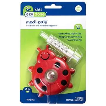 Ezy Dose Kids Baby Oral Syringe & Dispenser, Medi-Pals for Liquid Medicine, 5 mL/1 TSP, Ladybug, Red, Made in the USA, BPA Free