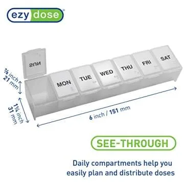 EZY DOSE Weekly (7-Day) Pill Organizer, Vitamin Planner, and Medicine Box, Large Compartments, Clear, Made in The USA