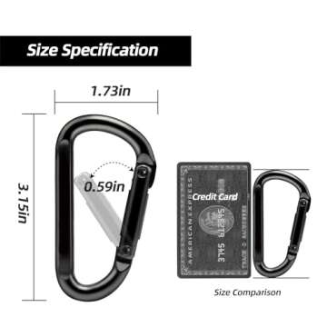 Show more Introducing the perfect solution for your everyday carrying needs: a compact and robust 3-inch Iron Carabiner Clip. Crafted with meticulous attention to detail, this heavy-duty black carabiner clip is designed for both functionality and style. Ideal for anyone who loves the outdoors or simply wants a reliable accessory for everyday tasks, this mini yet mighty carabiner proves to be a must-have in any toolkit.