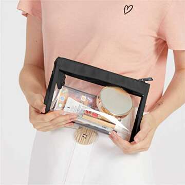 F-color Clear Makeup Bag, Multifunction Transparent Travel Toiletry Bag, Waterproof Large Opening Clear Cosmetic Bag Organizer with Zipper Fits Travel Bathroom, 2 Pack, Black