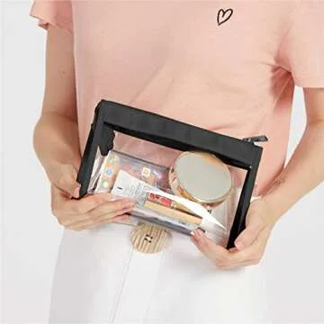 Show moreUpgrade your travel essentials with the F-color Clear Makeup Bag, a multifaceted solution designed for every globe-trotter and everyday user. Measuring at a perfect size of 8.6 x 5.5 x 2.4 inches, this transparent travel toiletry bag easily accommodates travel-sized bottles, ensuring they stand upright without the hassle of laying them down. Crafted from durable, eco-friendly PVC plastic, this waterproof bag allows for easy visibility, making it a breeze to locate your beauty or hygiene products quickly. The two-pack design offers exceptional value, whether you use them for organizing makeup, toiletries, or simply keeping your bag clutter-free.