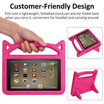 Show moreThe F i r e 7 Kids Case by Roasan is the ultimate protective solution for your 7-inch tablet, designed specifically for the 9th, 7th, and 5th Generation F i r e 7 models from 2019, 2017, and 2015. Built with the discerning parent in mind, this kid-friendly companion not only shields your device from drops and bumps, but it also seamlessly integrates accessibility for ports and buttons, ensuring no feature is hindered. Crafted from impact-resistant EVA material, this case provides superior drop protection and impact resistance, safeguarding your tablet against both the rigors of children’s use and everyday wear and tear. Its vibrant pink color and playful design capture the attention of any child, making it not just protective gear, but an exciting accessory for little tech enthusiasts.