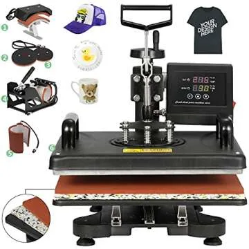 F2C 12" x 15" Heat Press Machine Pro 6 in 1 Swing Away Digital Heat Transfer Sublimation Press Combo for T-shirt Bag Hat Cap Mug Plate