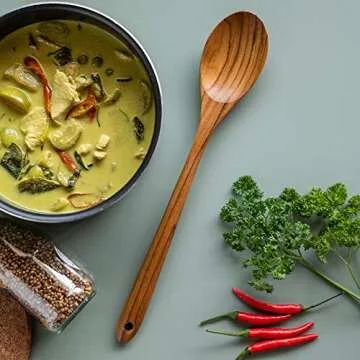 FAAY 13.5" Teak Cooking Spoon, Wooden Spoon, Mixing Spoon Handcraft from Teak | Healthy and High Moist Resistance for Non Stick Cookware