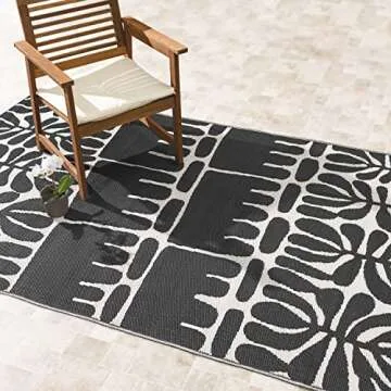 Fab Habitat Outdoor Rug - Waterproof, Fade Resistant, Crease-Free - Premium Recycled Plastic - Tribal, Black & White - Porch, Deck, Balcony, Mudroom, Laundry Room, Patio - Serowe - Black - 3 x 5 ft