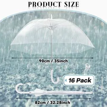 Designed with practicality in mind, each umbrella measures approximately 82 cm in length and boasts a 90 cm diameter. This size is perfect for accommodating most people, so you needn't worry about getting wet. The dome-shaped J handles enhance the umbrella's wind resistance and durability, making them a reliable choice for outdoor ceremonies. Plus, their transparent aesthetics make them suitable for various events, from weddings to graduations and more.