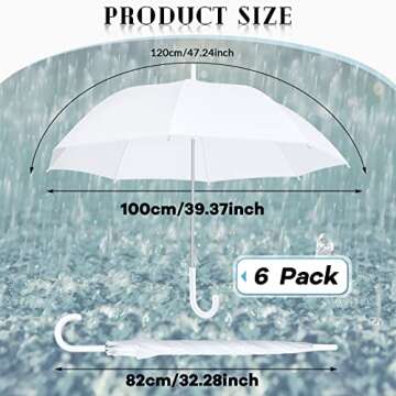 Whether it's a wedding, graduation, or any outdoor gathering, these umbrellas will enhance your experience. They are versatile enough to fit into various settings, allowing you to snap elegant photos without obstructing views. With a total of 6 umbrellas included in the set, you're prepared for anything - from group gatherings to romantic strolls in drizzly weather.
