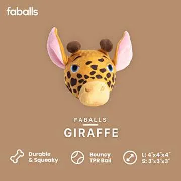 fabdog Faballs Dog Ball Toys - Super Squeaky Durable Dog Toys for All Breeds - Plush Dog Squeak Toy Balls | Animal-Themed Plush Toys | Large Giraffe