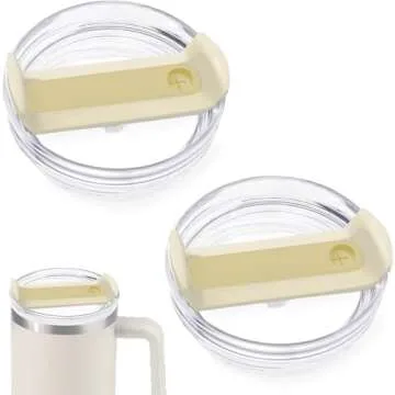 Fabenyok 40 OZ Tumbler Flip Straw Lid Replacement Fit for Stanley Quencher Tumbler, 2 PCS Spill Proof and Leak Resistant Tumbler Lids Compatible with Stanley Cup Accessories(Cream)